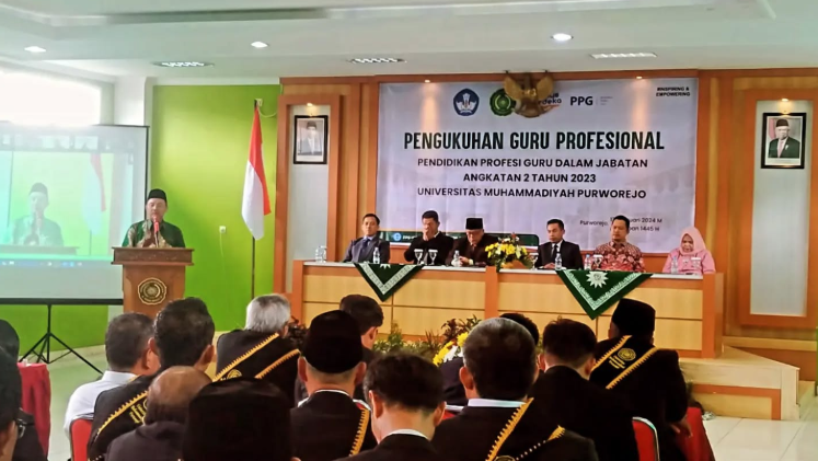 Universitas Muhammadiyah Purworejo resmi mengukuhkan dan angkat sumpah profesi 58 lulusan Program Pendidikan Profesi Guru (PPG) Dalam Jabatan kategori 1 angkatan 2 tahun 2023. Prosesi pengukuhan diselenggarakan di Ruang Seminar Kampus Sucen UMPWR, Sabtu, (17/02/2024).