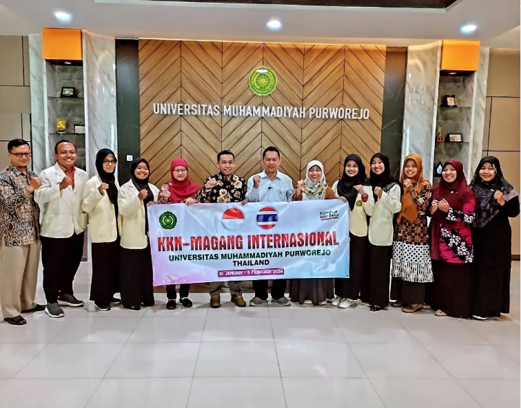 Universitas Muhammadiyah Purworejo (UMPWR) melepas 5 mahasiswanya yang akan melaksanakan KKN-PLP-Magang Internasional ke Thailand pada Selasa (9/1/2024) di Ruang Rapat Utama UMPWR. Kegiatan KKN Internasional ini dilaksanakan mulai tanggal 10 Januari 2024 sampai dengan 6 Februari 2024. KKN Internasional ini menjadi salah satu tindak lanjut dari kerja sama antara UMPWR dengan Sangkhom Islam Wittaya School, Thailand.
