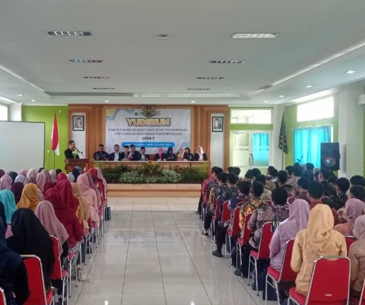 Fakultas Keguruan dan Ilmu Pendidikan (FKIP) Universitas Muhammadiyah Purworejo (UMPWR) melaksanakan Yudisium Kelulusan untuk 118 mahasiswa di Ruang Seminar Kampus III Sucen UMPWR. Yudisium ini merupakan periode pertama untuk tahun 2024. Hadir pula dalam acara tersebut Rektor UMPWR Assoc.Prof.Dr. Teguh Wibowo, M.Pd., Wakil Rektor I UMPWR, Dekan dan Wakil Dekan FKIP, serta para Ketua Program Studi di FKIP (Pendidikan Bahasa dan Sastra Indonesia, Pendidikan Matematika, Pendidikan Ekonomi, Pendidik