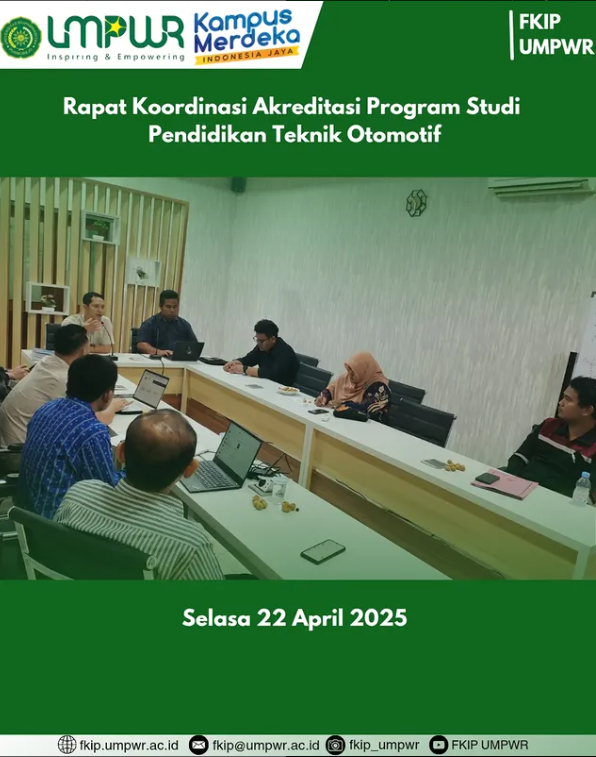 Program Studi Pendidikan Bahasa dan Sastra Inggris menyelenggarakan Rapat Koordinasi dalam rangka persiapan akreditasi Program Studi Pendidikan Teknik Otomotif. Kegiatan ini dihadiri oleh jajaran pimpinan fakultas, dosen, serta tim akreditasi, dengan tujuan memastikan kesiapan seluruh aspek administrasi, kurikulum, dan dokumen pendukung agar proses akreditasi berjalan lancar dan sesuai standar yang ditetapkan oleh Badan Akreditasi Nasional Perguruan Tinggi (BAN-PT).